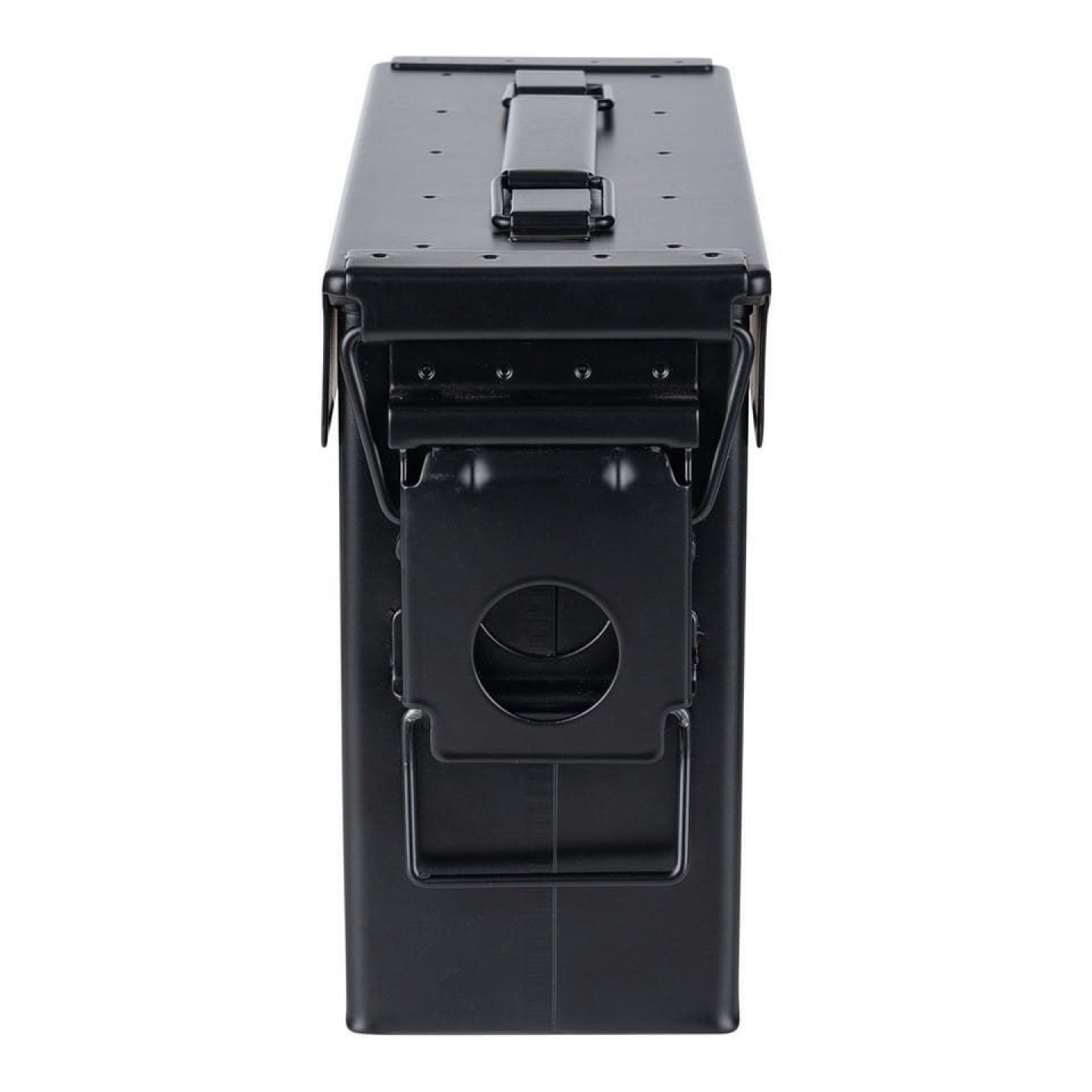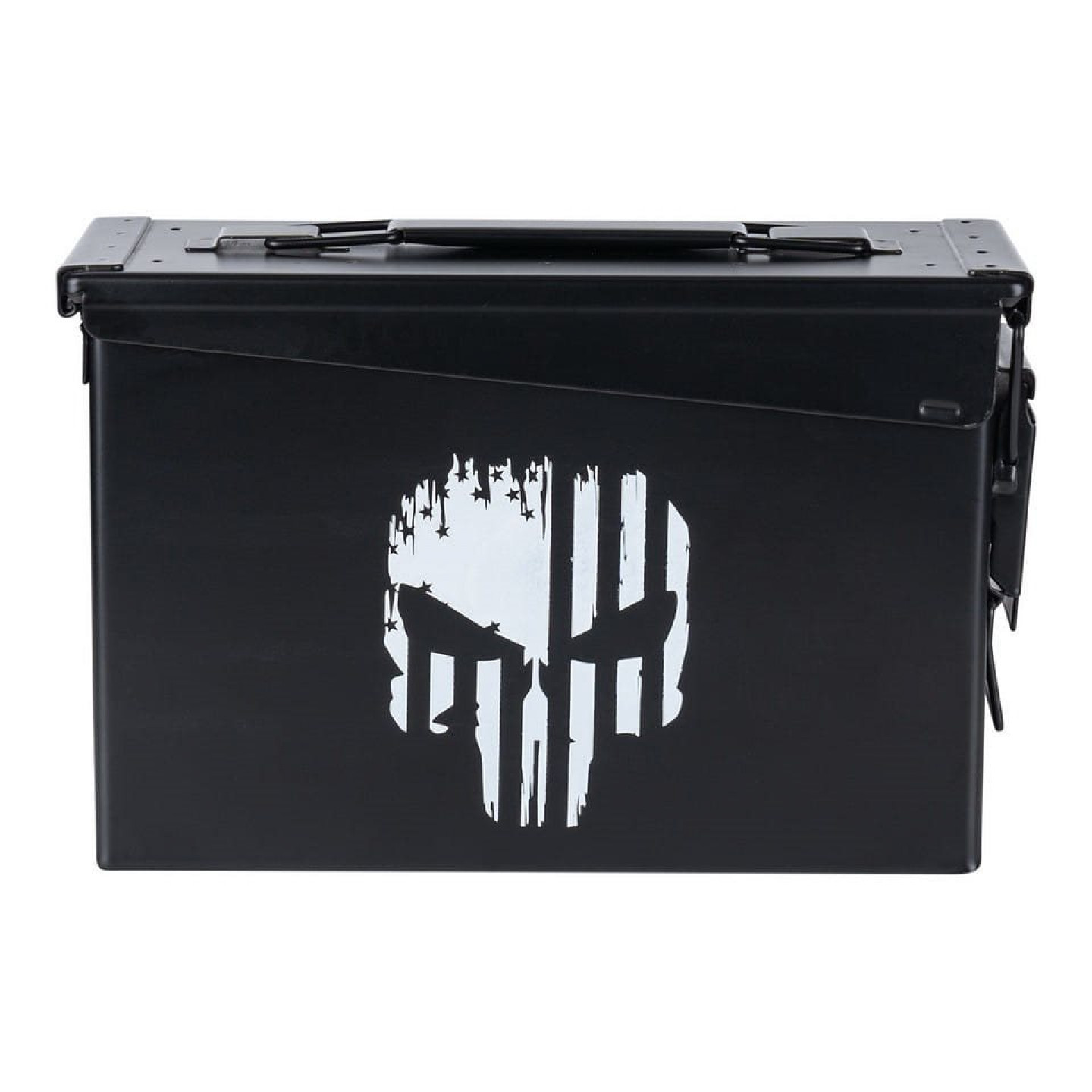Muničná debna s potlačou. Oceľová konštrukcia. Rozmery 27,6 x 9,6 x 17,9 cm.